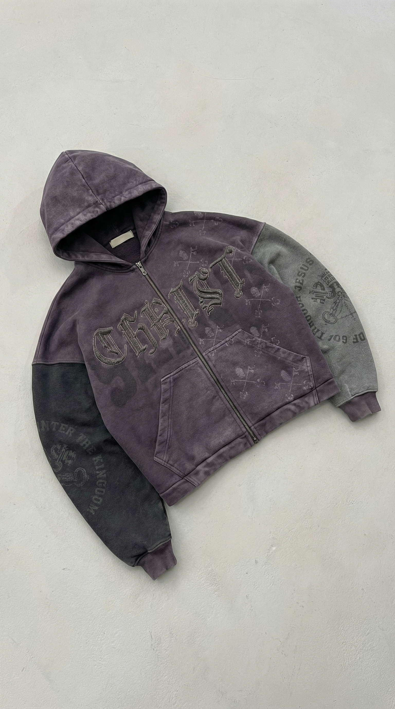 OPAQUE SPIRIT – (Purple) CHRIST Distressed Zip Hoodie